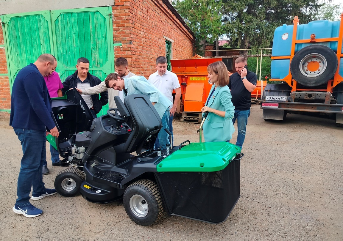 Наставник СМД Кореновского района Александр Блинов, заместитель председателя Совета Андрей Бербенцев, член Коллегии наставников СМД Артем Наточиев, молодые депутаты Денис Тибекин и Максим Задорожный передали МКУ «Уютный город» еще один трактор-газонокосилку, полученный в качестве приза за победу в конкурсе «Лучшая группа СМД в Советах городского и сельских поселений Кореновского района» в 2023 году.