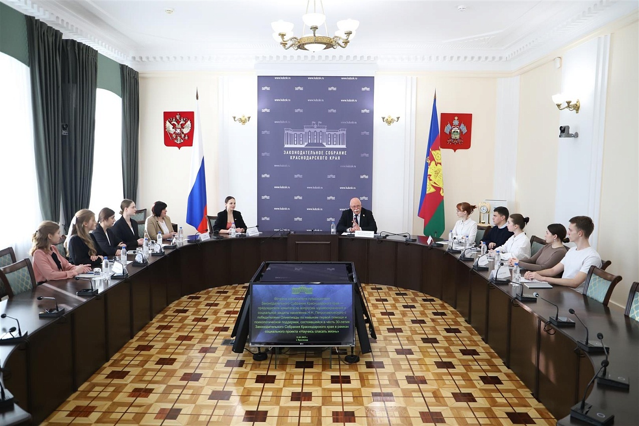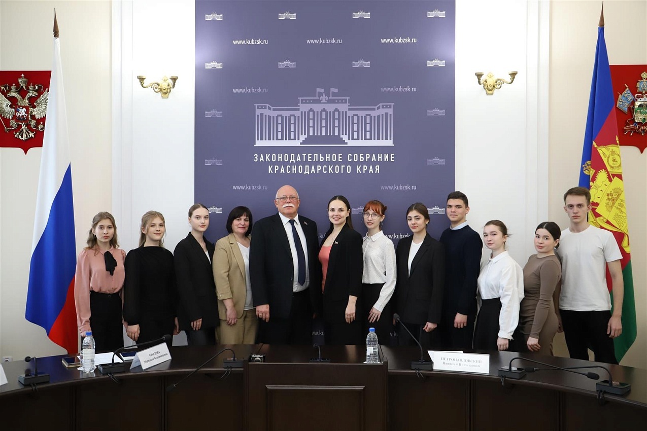 Сегодня в кубанском парламенте состоялась встреча заместителя руководителя ЗСК – председателя комитета по вопросам здравоохранения и соцзащиты населения Николая Петропавловского со студентами Горячеключевского медицинского колледжа. Также во встрече приняла участие председатель профильного комитета Совета молодых депутатов края Марианна Крылова.