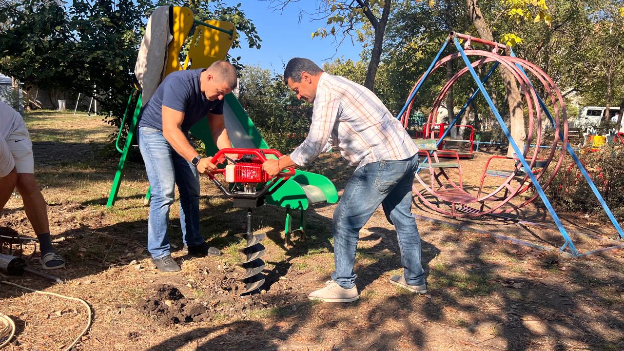Зампред СМД Северского района Денис Бирюков оказал помощь в благоустройстве детской площадки по улице Запорожской в станице Северской.