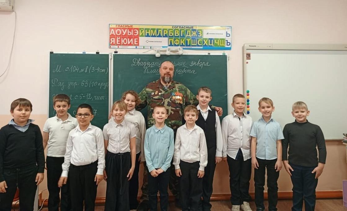 Ее коллега по СМД Александр Козырев пригласил на встречу со школьниками села Воронцовка организатора волонтерской группы «Все для Победы», майора Александра Ершова, который занимается доставкой гуманитарной помощи в зону СВО.