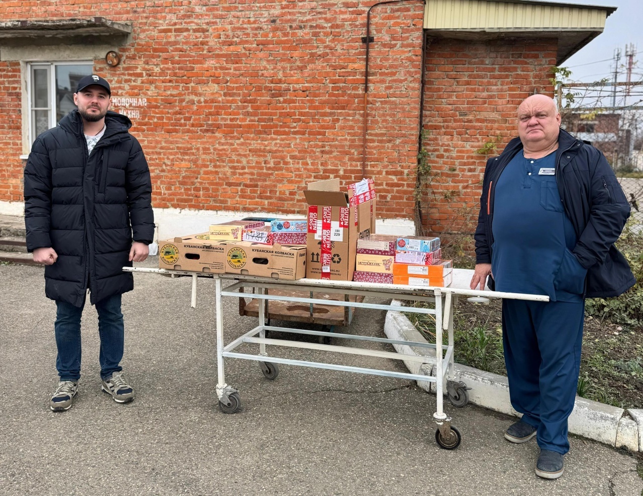 Так, зампред СМД Северского района Алексей Волков совместно с предпринимателями Романом Мануиловым и Игорем Сафошкиным в очередной раз приобрели и доставили провизию (печенье, конфеты, пирожные, чай, кофе и колбасные изделия) в краснодарский военный госпиталь.