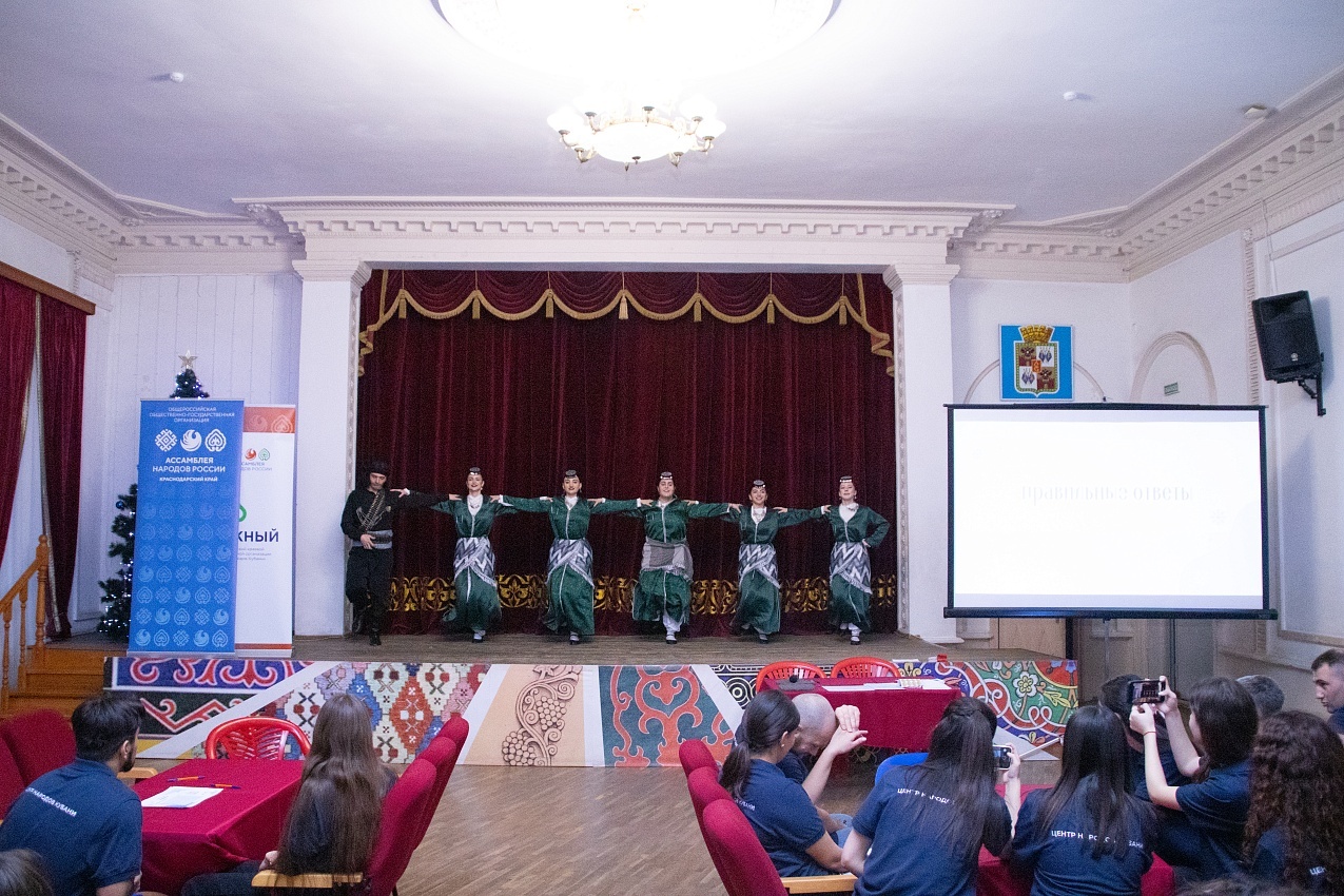 Затем ребят ждала интерактивная игра «Дружный Краснодар», состоявшая из трех частей: «Национальный костюм», «Где логика?» и «Студия Союз». По итогам прохождения двух испытаний были определены победители, получившие заслуженные подарки.